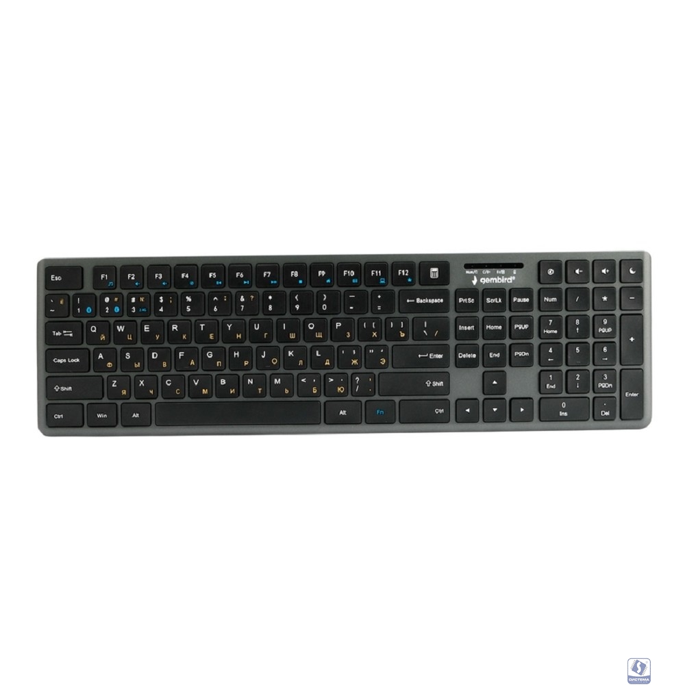 | название | Повреждение упаковки Клавиатура беспроводная Gembird KBW-8460, 103кл+5 доп, 12Fn, ножничная, тихая, BT 5.0/2.4 ГГц, черная |