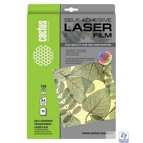 | название | Cactus CS-LFSA415010 Пленка A4/150г/м2/10л./прозрачный самоклей. для лазерной печати |